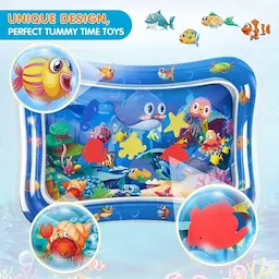 • Promote your baby’s sensory development: The soft, comfortable baby tummy time water mat is the perfect sensory toy for developing solid head, neck and shoulder muscles as well as refining the hand-eye coordination, fine motor and social skills. The bright, colourful sea animals and eye-catching illustrations will keep your baby playing for hours.